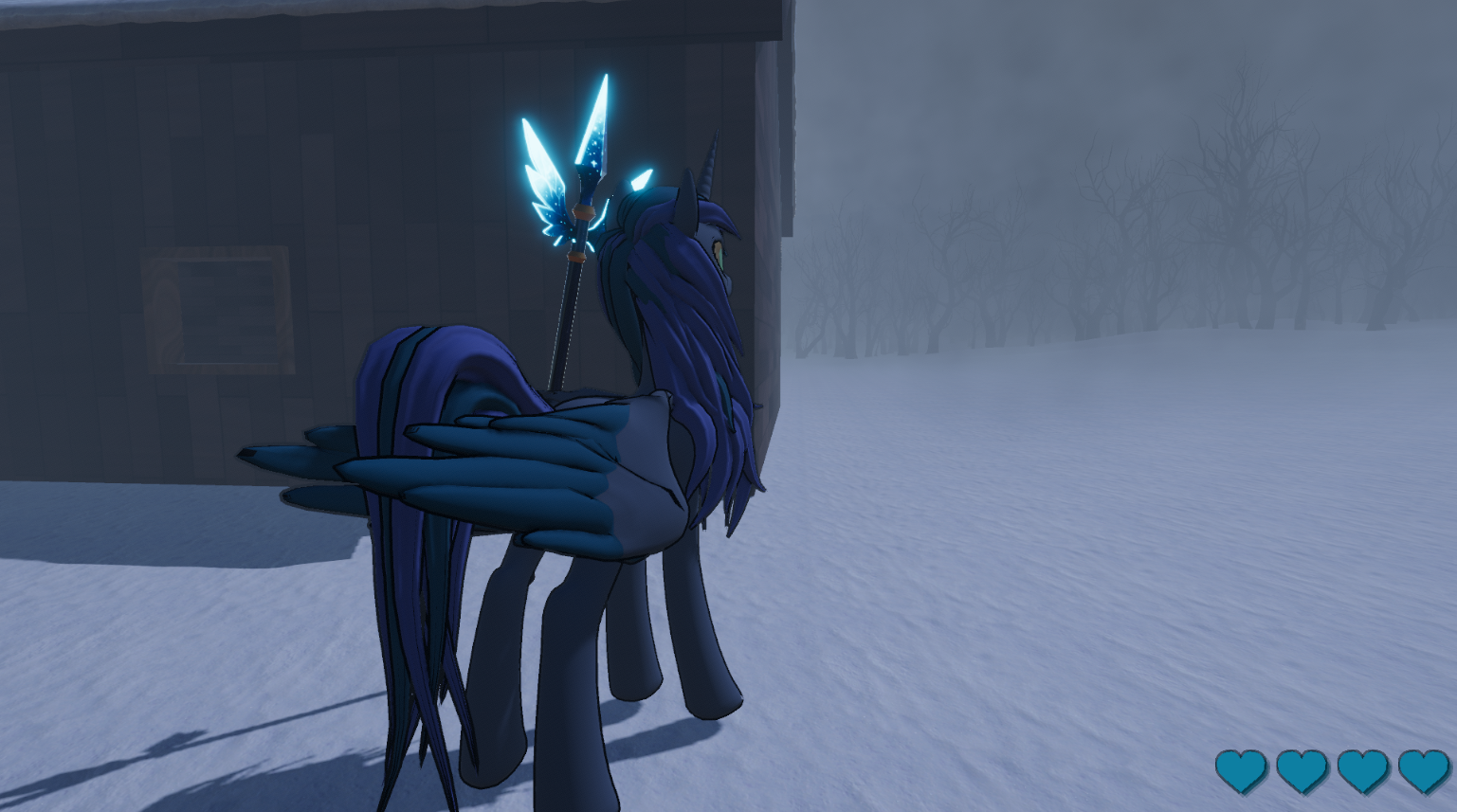 These lands were once full of life, joy, and magic. But the world collapsed, leaving behind only a grey wasteland, ash, and lost memories. You are a fire alicorn wandering through a ruined world, searching for answers to a question too frightening to ask.